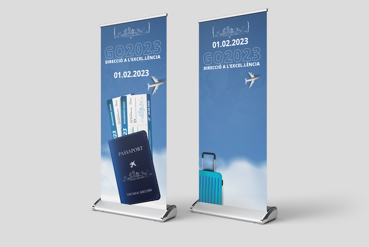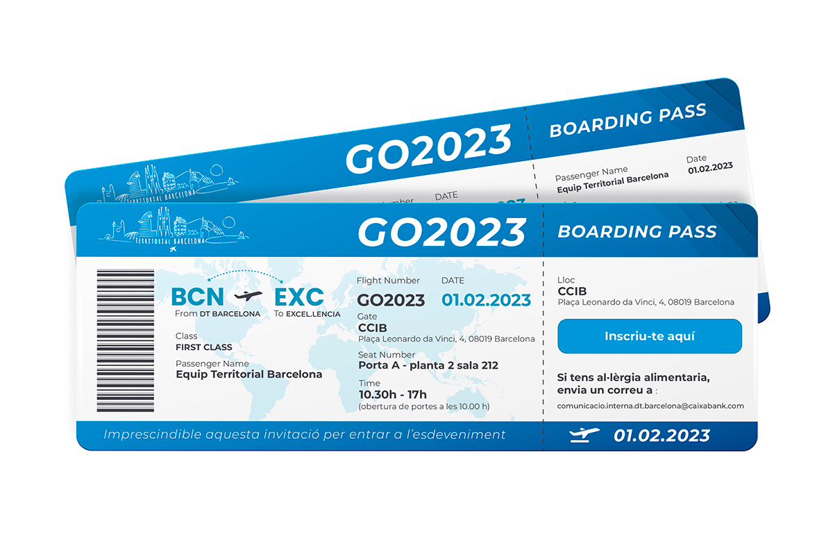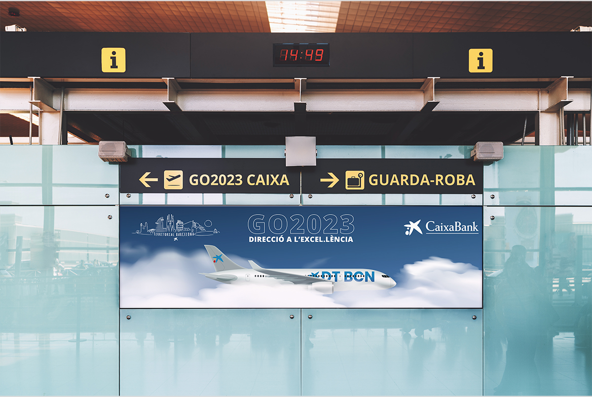 La idea fue convertir toda la sala de reuniones en un aeropuerto: señalética, invitaciones, pantallas, todo debía dar la sensación de la partida a este nuevo viaje.